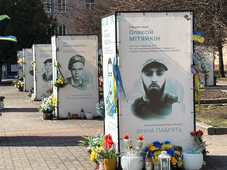 "Це вперше за всі роки війни була така зима, що ми просто не могли встановлювати банери. Вони кріпляться стяжками, а при мінусовій температурі вони лопаються. Тому портрети захисників, з якими громада попрощалася у листопаді, грудні, січні, лютому та на початку березня, були виготовлені раніше і чекали, поки настане тепліша погода", — каже посадовиця.