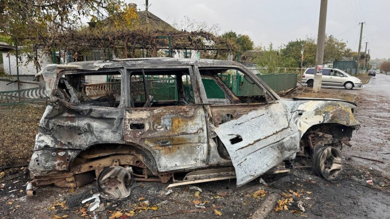 За уточненою інформацією, через влучання безпілотника, яке сталося там надвечір 18 жовтня, пошкоджені оселя місцевих, дві автівки, лінія електропередач.