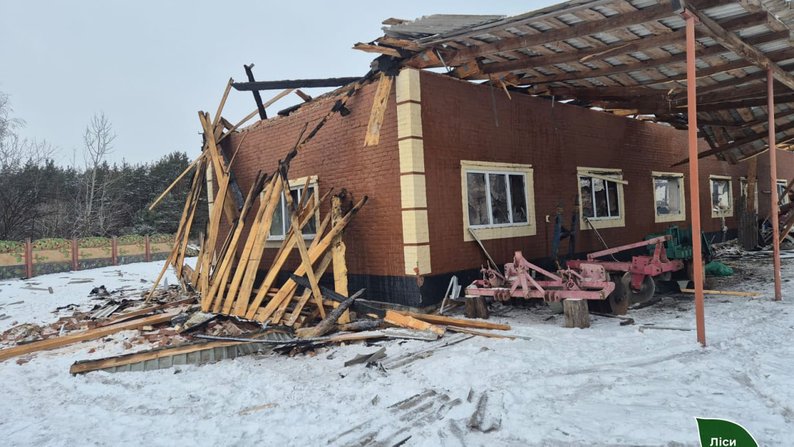 Пошкоджено офіс лісництва – вибиті вікна, зруйновані господарські приміщення. Знищені гаражі, де зберігалася техніка. Постраждав автопарк лісництва, зокрема й новий трактор.