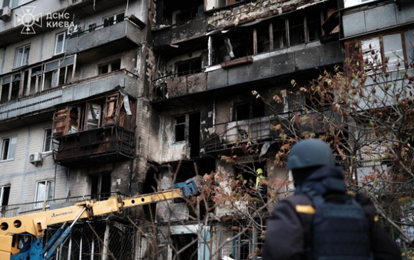 А в суботу росіяни вдарили по Києву балістикою. Внаслідок удару двоє людей загинуло, ще 13 постраждало. Пошкоджень зазнали багатоповерхові житлові будинки, дитячий садок, заклад освіти, приміщення магазинів і транспортні засоби. Пожежу гасили майже добу.