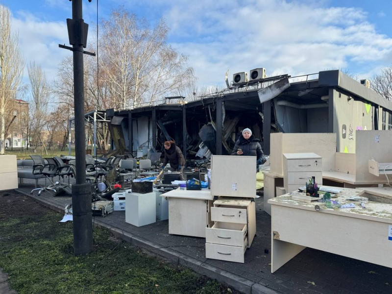 Центр надання адмінпослуг «Я-ВЕТЕРАН», який було пошкоджено через атаку на Кривий Ріг у ніч проти 22 грудня 2025 року. Суспільне Дніпро