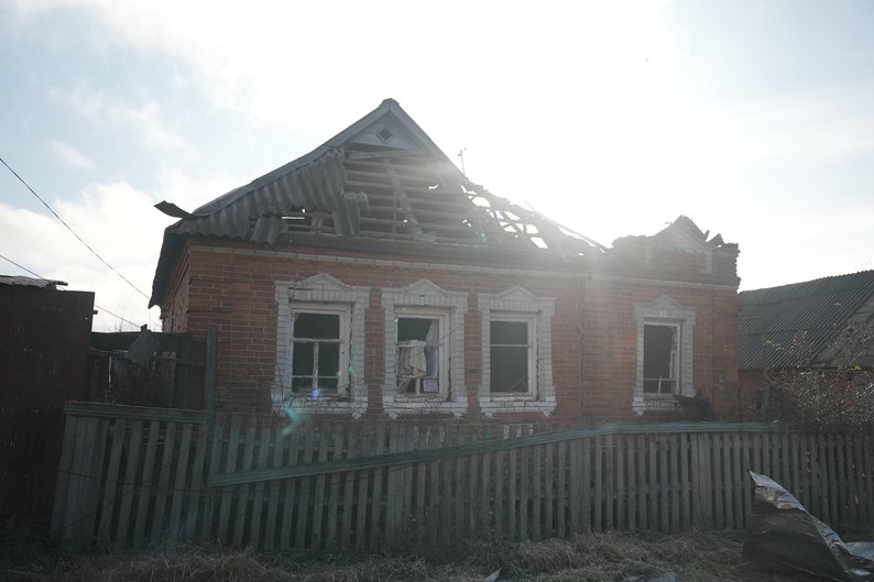 "Вісім вікон у нас пошкоджені, у спальні стеля обвалилася, двері залізні перекосило: не відкриваються й не закриваються. Ворота розірвало, кухню розкрило. На хаті шифер побитий – буде текти вся хата", — розповіла пані Валентина.