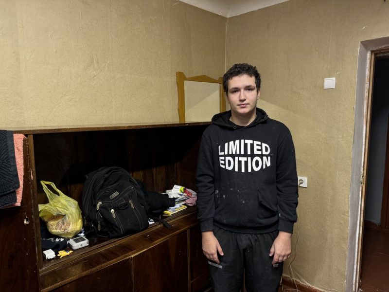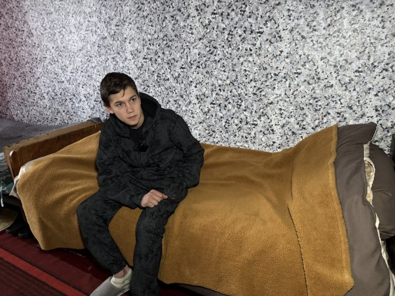 "Сплю під двома ковдрами. У кімнаті холодно через відключення світла. Вдома тепло, там дров’яний котел. Ось градусник є, з дому дали, на градуснику 13 градусів тепла. Було так холодно, що я аж захворів, тепер ходжу ось у теплих тапочках, у теплому костюмі", — продовжив мешканець гуртожитку Данило Семеренко.