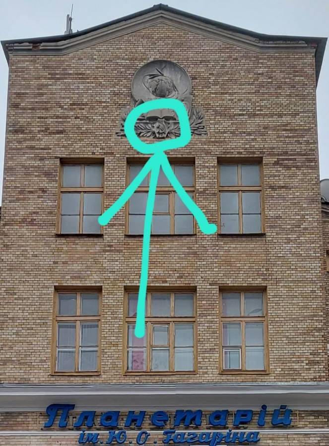 Емблема Радянського Союзу на будівлі планетарію ім. Гагаріна. Фото: Декомунізація.Україна/Telegram