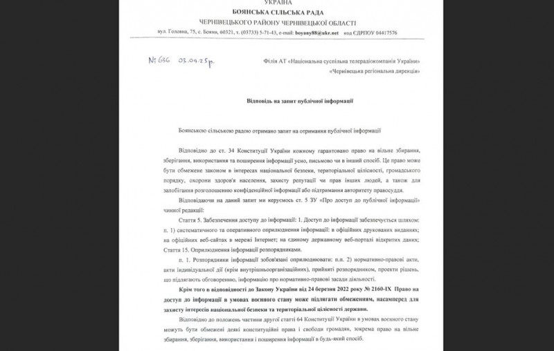 Експерт з медіаправа Ігор Розкладай каже, що відмова Боянської громади є неаргументованою. Більше про це читайте у публікації.