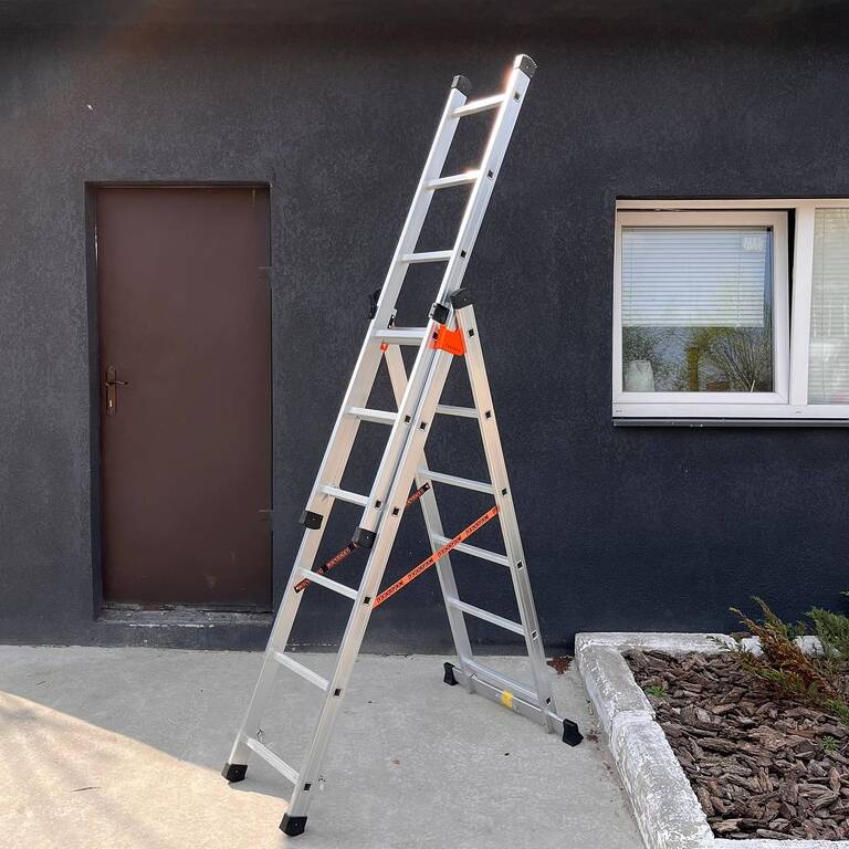 - Драбини трисекційні — її можна використовувати як приставну або драбину. Знімна секція може використовуватись самостійно;