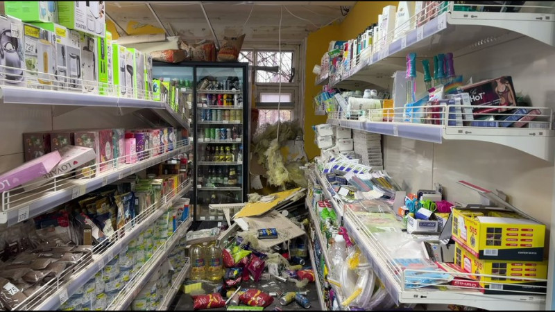 Працівниця магазину, що розташований поруч з місцем влучання, Марія розказала: у приміщенні крамниці побиті вітрини та холодильники, також відірвало кондиціонер та панелі на стелі.