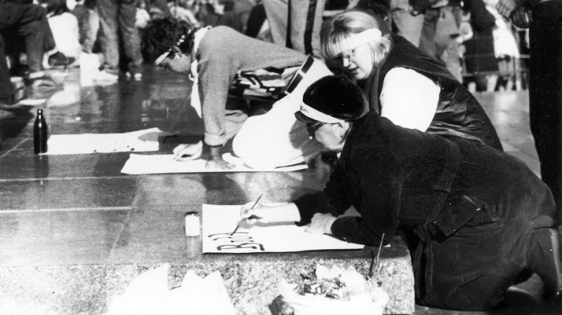 Учасниці «Революції на граніті» у Києві, жовтень 1990 року. Український Інститут Національної Пам’яті