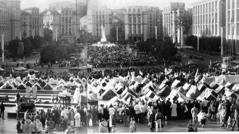 Наметове містечко у Києві та Жовтневій площі, жовтень 1990 року. Український Інститут Національної Пам’яті