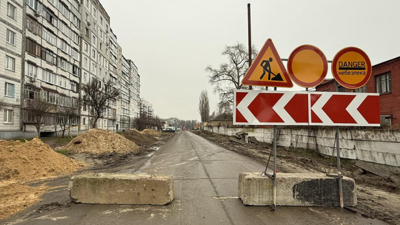 Перекрита дорога на вулиці Курсанта Єськова у Чернігові. Управління транспорту, транспортної інфраструктури та зв’язку Чернігівської міськради