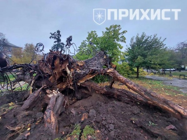 Як повідомляється, на жаль, під час падіння дерева пошкодився також і арт-об’єкт – переможець конкурсу партиципаторного бюджетування “Хоровод”.