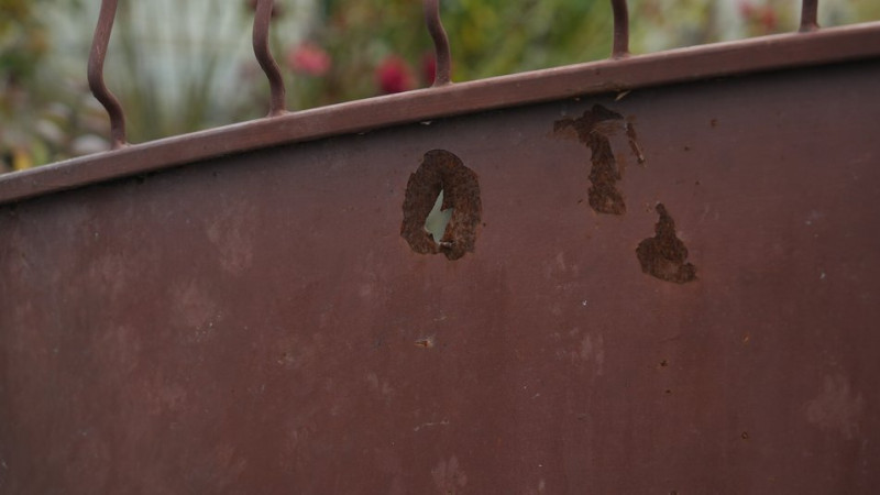 Отвори від уламків російських снарядів. Знищений російським ударом приватний будинок родини Олександра Панченка. Суспільне Запоріжжя