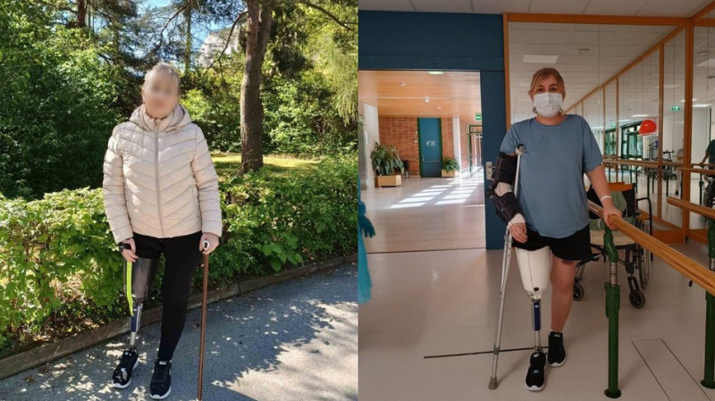 "Дружині ампутували ногу, вище коліна. Їй робили операцію в Австрії, вона ще досі в себе не прийшла. Ходити вона навчилася на протезі, але вона дуже.. Ну, як. Стрес у неї. Вона дуже боїться цих вибухів, цього всього", — розповів чоловік.