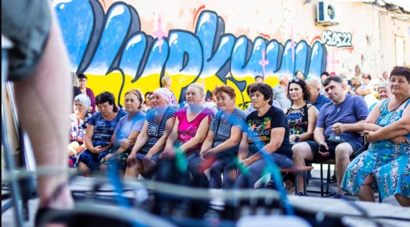 У більшості сіл та містечок музиканти грали просто неба. Посеред села ставили імпровізовану сцену, а перед нею на стільцях, лавах і навіть на гойдалках дитячих майданчиків сиділи слухачі. Але в Ізюмі концерт пройшов у вцілілому Палаці культури, що вразив навіть музикантів, які бачили світ.