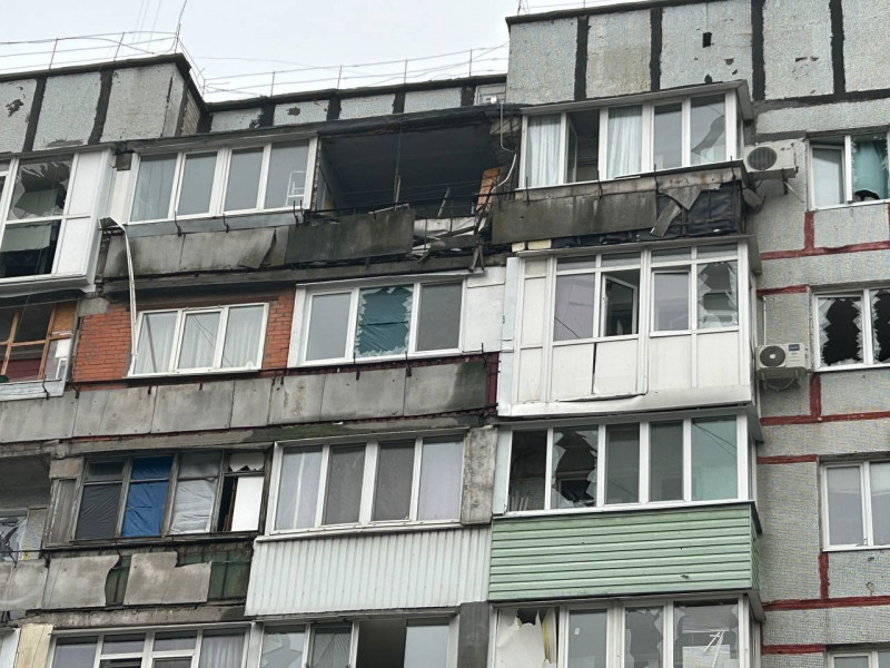 Мешканець пошкодженої багатоповерхівки Геннадій в момент обстрілу ховався у коридорі. У його квартирі вибило вікна, зачепило також авто, яке стояло під будинком.