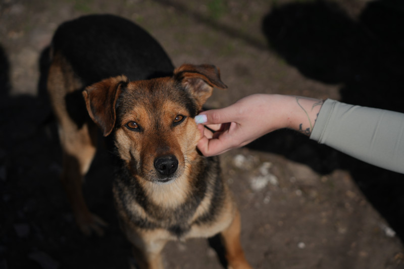 "Дід, буває, виходить, як КАБами обстрілюють Покровку. А вони прибігають до нього і жмуться. А тут такий здоровий є, лахматий, то він прибіг і прижимається до нього. І наш пес дуже боїться теж. Він і в хату тікає, і до діда жметься", — сказала вона.