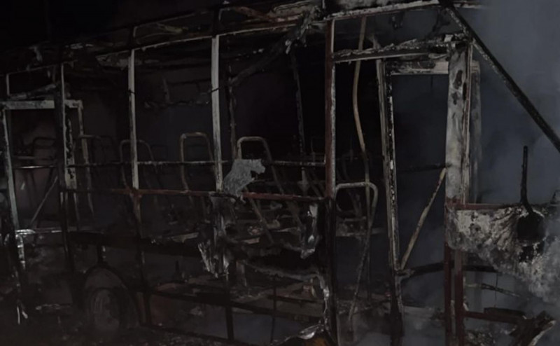 Автобус, у явий поцілив російський дрон, згорів. Фото: Сумська ОВА