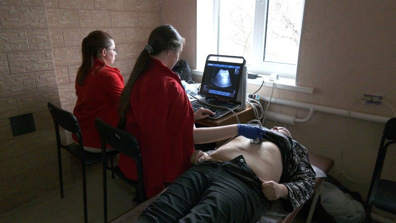 Медикиня проводить УЗД органів черевної порожнини. Суспільне Вінниця