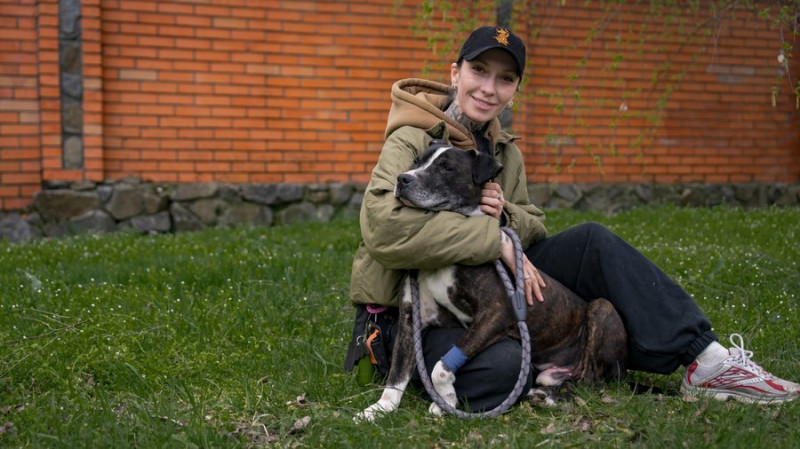Власники залишили зачиненим у вольєрі, поруч з яким влучив КАБ. З Лозової до Дніпра евакуювали трирічного пітбуля