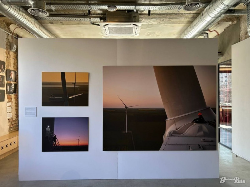 Окремі світлини показують і сучасну енергетику, зокрема роботу вітрових електростанцій. Один із кадрів був зроблений на вершині вітряка під час заходу сонця.