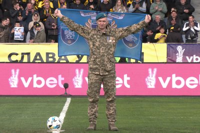 Перший символічний удар по м’ячу зробив військовослужбовець з Чернівців Юрій Фотіков, який три роки був у російському полоні, зокрема на Курщині.