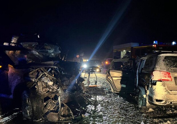 Як повідомляють у пресслужбі поліції, ДТП сталася 28 грудня близько 21:10 на автодорозі Київ–Харків, поблизу села Іванків Бориспільського району Київщини. У аварію потрапили маршрутка Mercedes-Benz та легкові автомобілі Jeep і Volkswagen.