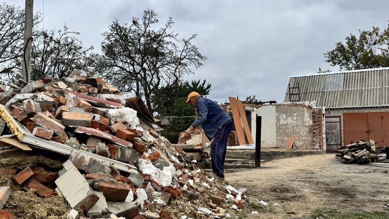 Суспільне полікувалося з людьми, чиє житло російські дрони зруйнували або пошкодили. У Віталія Голуба через влучання російського дрона від дрона залишився фундамент. Чоловікові — 84 роки. Будинок він звів сам у 1992 році. Нині живе у літній кухні, яка вціліла. Будинок мріє відбудувати. За його підрахунками, потрібно мінімум два мільйони.