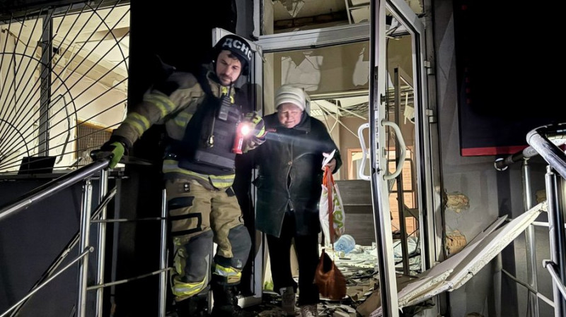 Рятувальник евакуює одну з поранених жінок через атаку по Дніпру, 20 січня 2026 року. ДСНС України/Telegram