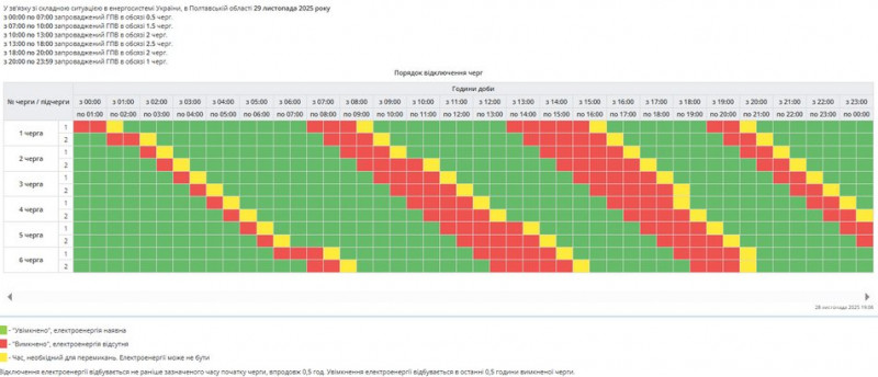 Графік відключення електроенергії на 29 листопада. «Полтаваобленерго»