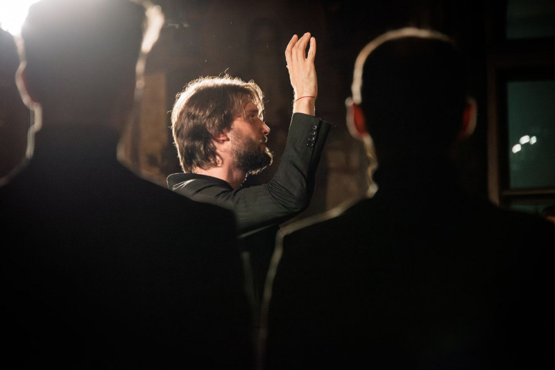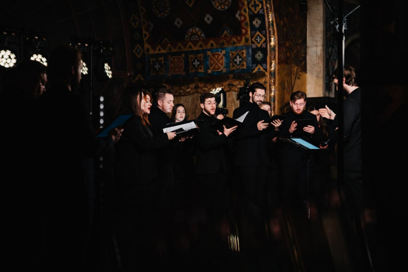 Під час виконання української духовної музики в її автентичному сакральному середовищі у Києво-Печерській лаврі.