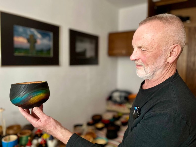 "Чому дерево? Мій дід, чех, був столяром-червонодеревникомЧервонодеревник — це висококваліфікований столяр, який спеціалізується на виготовленні елітних, художніх меблів із цінних порід деревини (червоне дерево, дуб, горіх тощо). Ці майстри працюють над створенням унікальних інтер'єрів, часто поєднуючи функціональність із мистецтвом, використовуючи техніки різьблення, інкрустації та фанерування.. Я його не знав, бо його німці в 41-му році прийшли і розстріляли. Біля Дубна було повністю чеське село, чеське поселення, яке називалося Чеський Страхлів. І там мій дід був столяром. Він мав свою школу, набирав учнів, вчив їх", — розповів чоловік.
