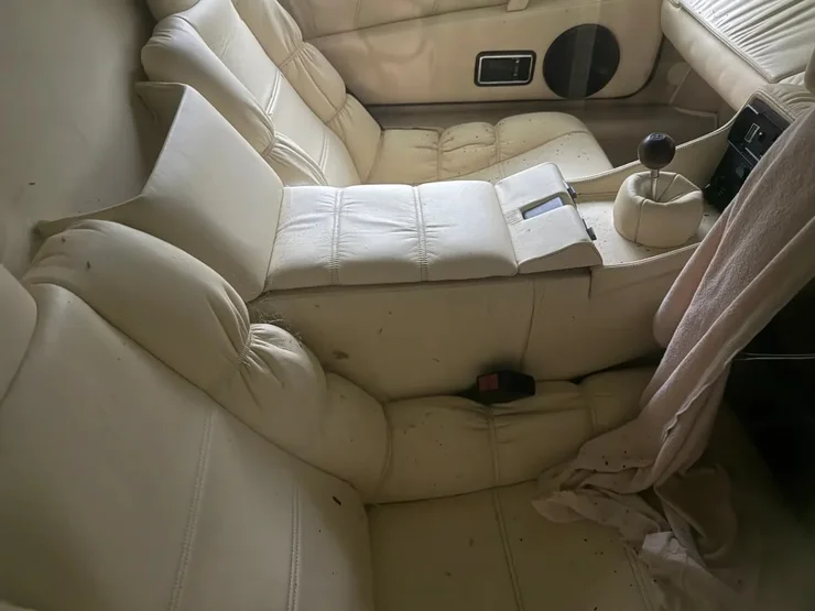 Стан Lotus Esprit залишає бажати кращого і йому потрібна реставрація. Його кузов покритий шаром бруду та плісняви. А от білий шкіряний салон непогано зберігся.