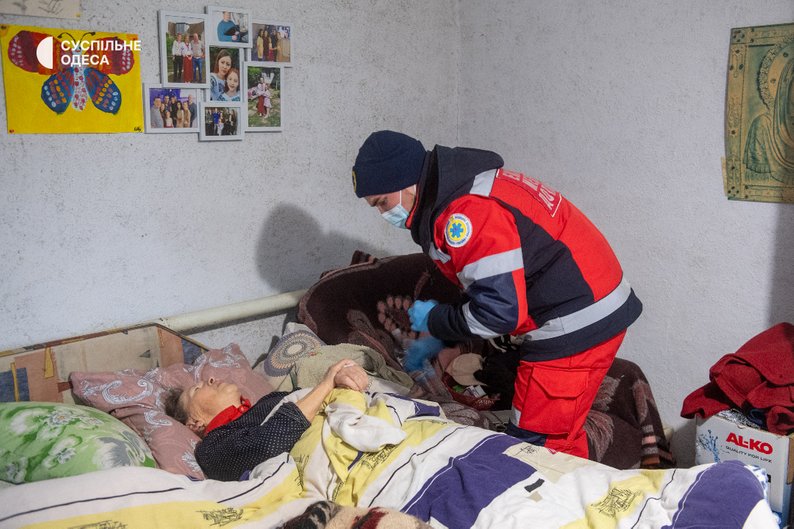 Фельдшер-парамедик Роздільнянської станції екстреної медичної допомоги Роман Рудик допомагає пацієнтці. Суспільне Одеса/Борис Бухман