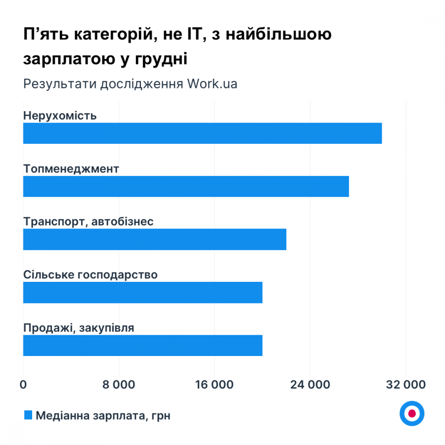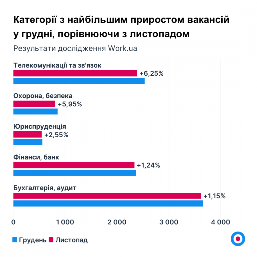 Топ-5 категорій з найбільшою кількістю вакансій у грудні виглядає так: