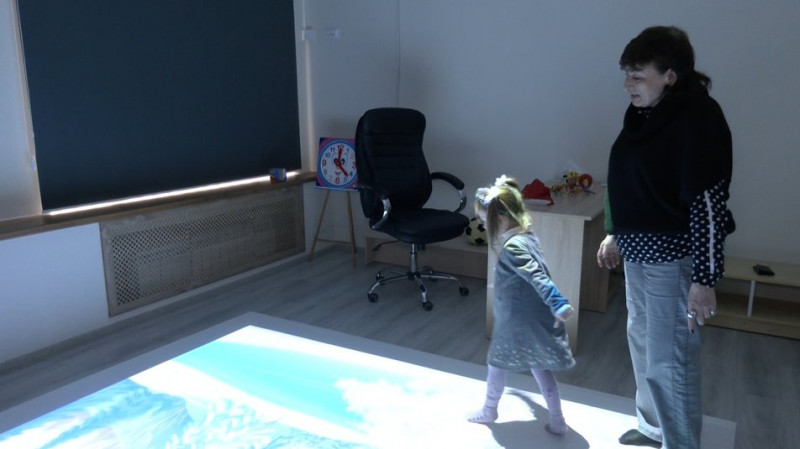 Окрім догляду та виховання, з дітьми працюють психологи. Наталія Вічалковська проводить корекційне заняття, використовуючи інтерактивну підлогу. Каже, що впродовж 45 хвилин дитина тренує пам’ять, уяву, мислення, вивчає кольори, математику та англійську. Долучають до цих вправ і дітей, які пересуваються на кріслах колісних.