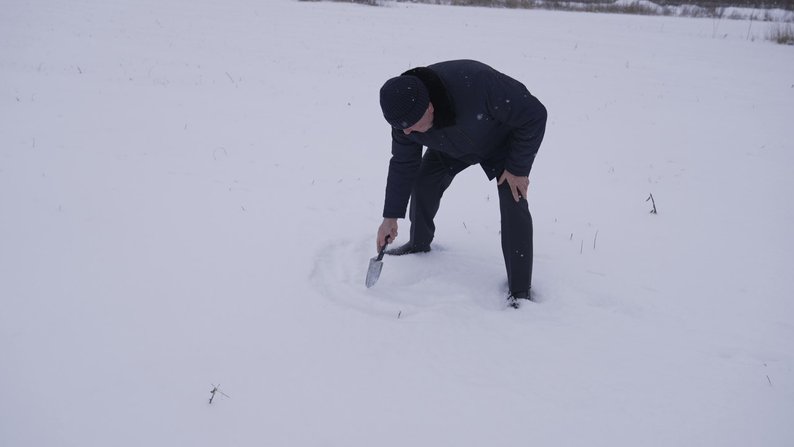 Олександр Корнійчук. Суспільне Вінниця"На сьогодні товщина снігового покриву на даному полі від 12-13 см. Цього достатньо, щоб озимі культури добре зимували. Кожен сантиметр снігового покриву дає нам підвищення температури на 1 градус", — сказав Корнійчук.