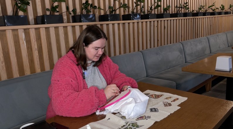 "Я не вишиваю рушники, але можу давати поради, як вишивати рушники, техніки різні. Але я не вишиваю, бо для мене має бути річ, яку ти вишиваєш, вкладаєш дуже багато часу і праці — ти маєш її одягати, показувати людям", — каже жінка.