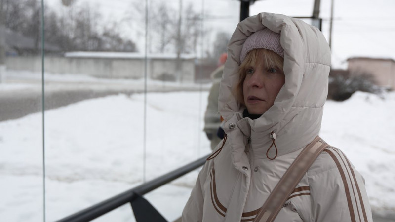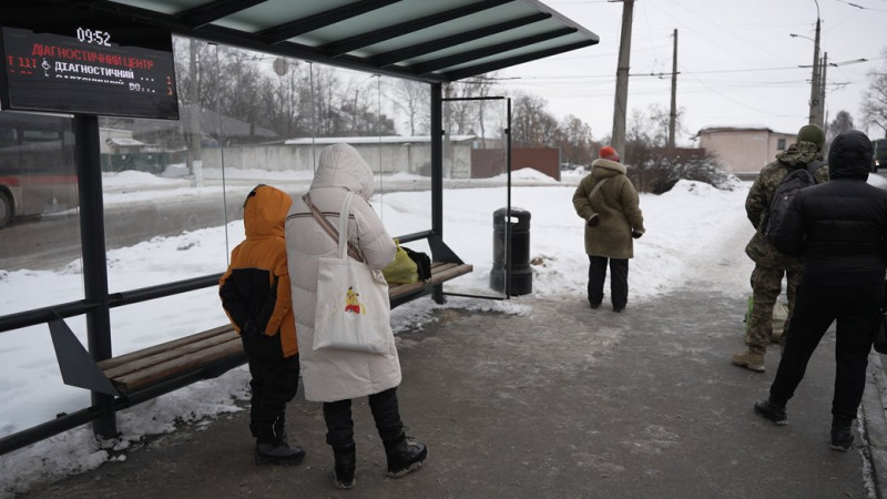 Люди чекають на транспорт на зупинці “Діагностичний центр” у Чернігові. Суспільне Чернігів