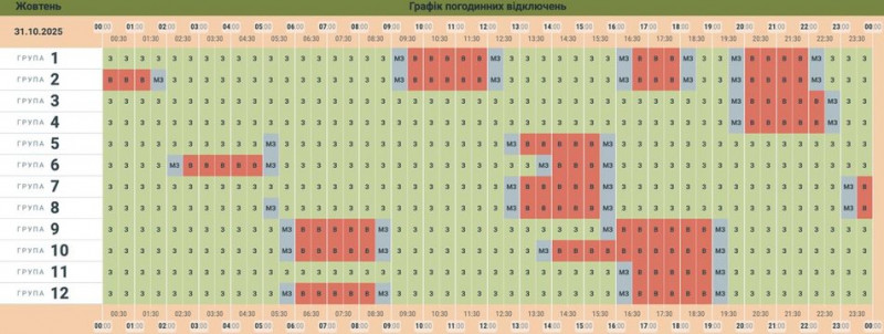 Графік відключень електрики 31 жовтня. Суспільне Чернівці