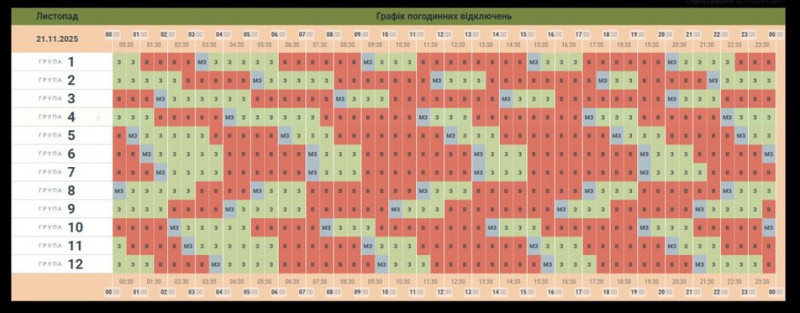 Графік погодинних відключень електрики на 21 листопада 2025 року. АТ «Чернівціобленерго»