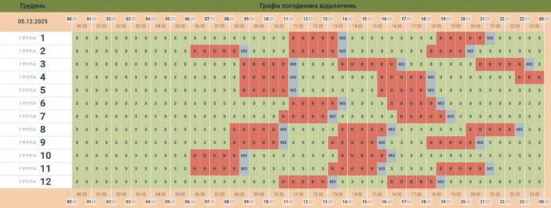Графік погодинних відключень електрики на 5 грудня 2025 року у Чернівцях. АТ «Чернівціобленерго»