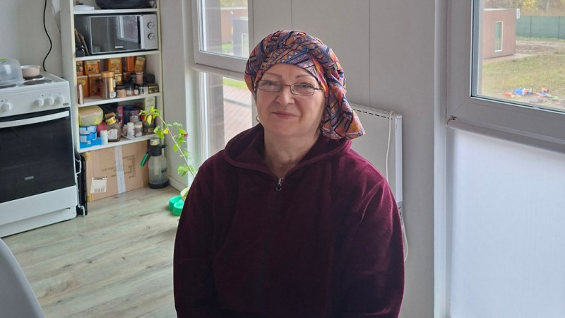 Валентина Андрусенко живе з чоловіком в однокімнатній квартирі з відкриття модульного містечка у жовтні 2023 року. Її дім на Кільцевій у Чернігові був зруйнований у перші дні повномасштабного вторгнення. Відтак до звільнення області подружжя ночувало в школі №15, а після — у родичів. Потім отримали соціальну квартиру в модульному містечку. Договір уклали на рік, щоразу його потрібно продовжувати.