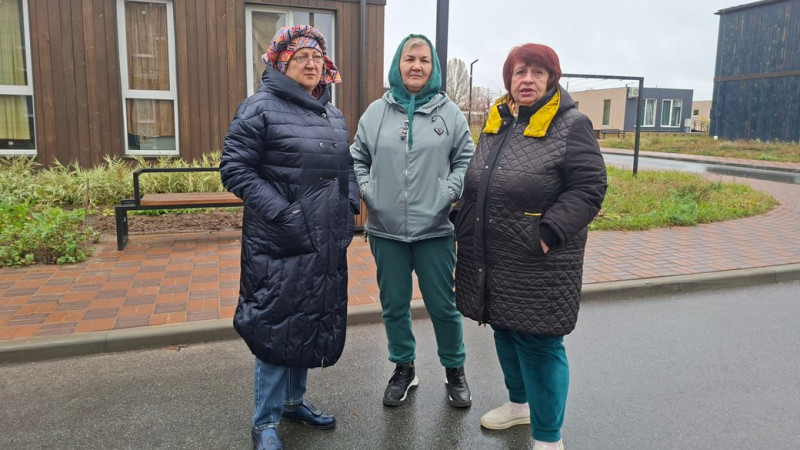 Інші жінки, що зібралися біля будинку, – переселенки з різних міст України. Валентина Козир з Куп’янська, що на Харківщині. Вона залишила дім 6 червня 2022 року. Проїхала дев'ять блокпостів, Печенізьке водосховище, поки дісталася до Харкова. Звідти попрямувала до брата в Чернігів. У лютому 2024 року вона отримала тут квартиру.
