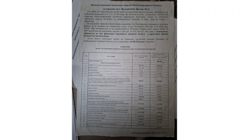 Кошторис витрат ЖЕК №13 на утримання модульного будинку. Суспільне Чернігів