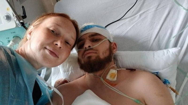 Микола Коханський з дружиною після поранення у лікарні. Миколи Коханського