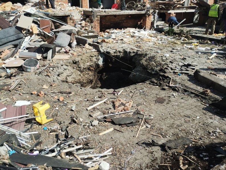 Вирва після падіння дрона на подвір’я будинку. 20 березня 2025 рік. Суспільне Кропивницький