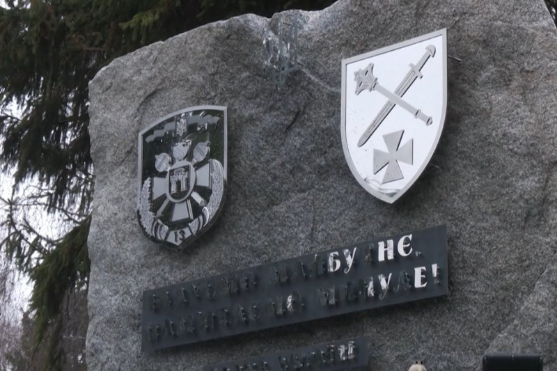 На меморіалі викарбували напис: “Будуємо майбутнє, пам’ятаємо минуле!”, а також два герби. Їхнє значення пояснив командувач ОК "Захід" Володимир Шведюк: