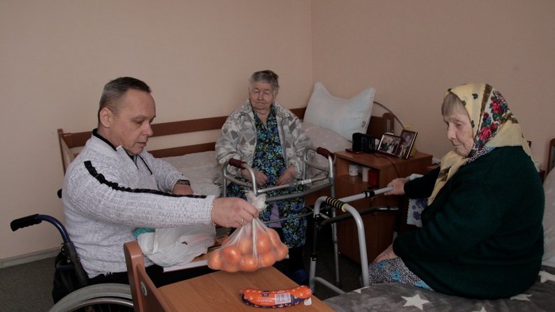 Тепер В’ячеслав — головна сполучна ланка між 180 мешканцями пансіонату та зовнішнім світом. Більшість підопічних — маломобільні, і кожен хоче чогось свого: мандаринів, пиріжків або просто уваги, розповіла Катерина Якимчук.