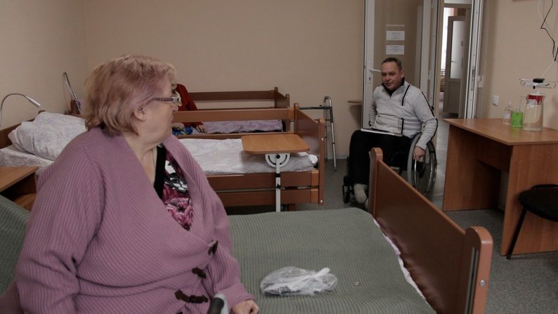 "Таке рідко дають, тому підкуповуємо трошки. Нам Славік привозить. Замовимо, і через дві години привозить і віддає. Це не вперше. Добре нас обслуговує. Родини у мене не залишилося. Я одна. Сказали, що у місті, де йде стрільба, такого інваліда тримати не можуть. Привезли сюди", — розповіла Лідія Сухова.