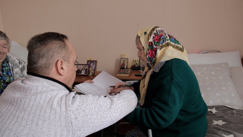 В’ячеслав Коновалов спілкується з мешканкою пансіонату. Суспільне Вінниця